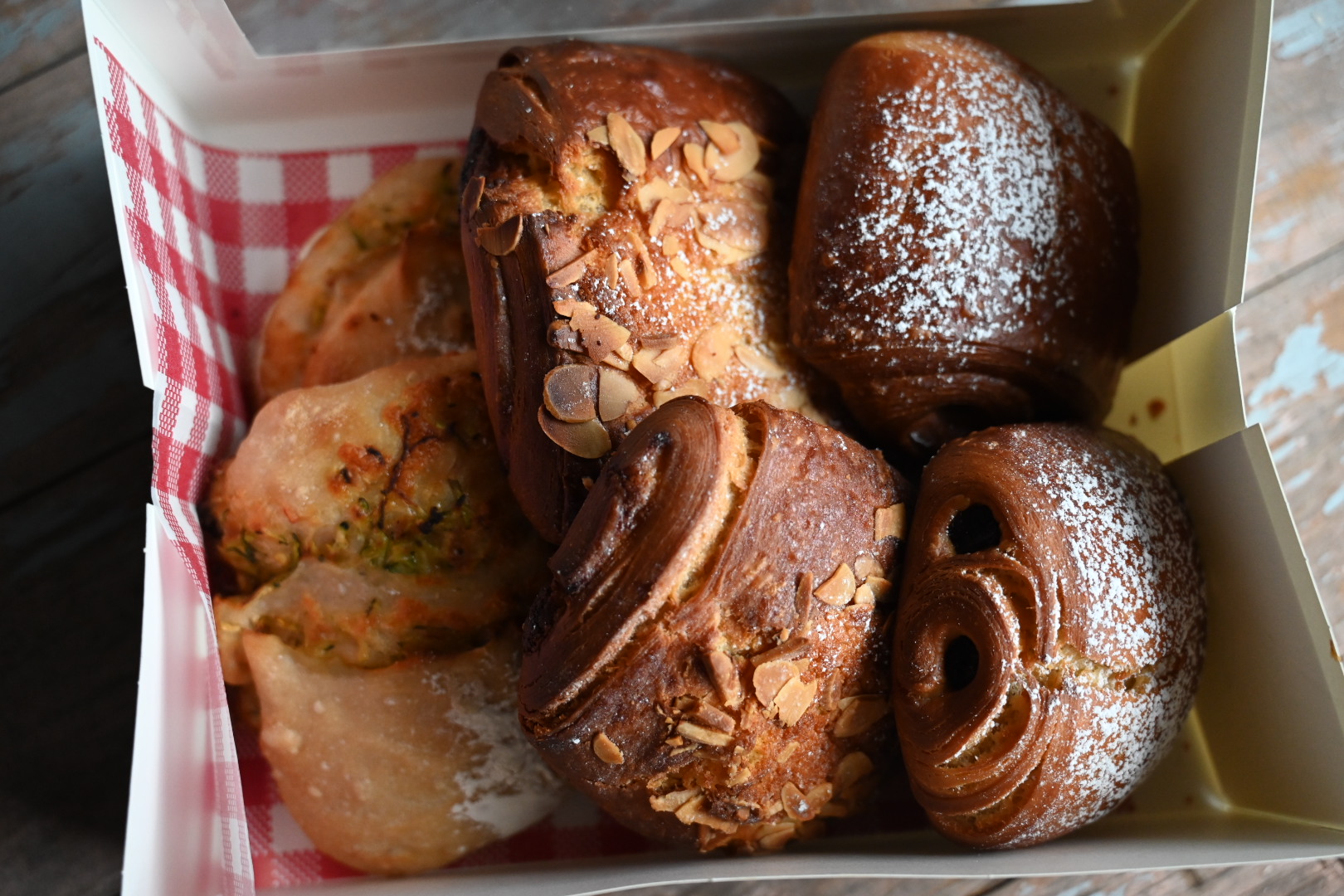 Morning Tea Pack – 2 x Chocolate Croissants, 2 x Savoury bites, 2 x Almond Croissants